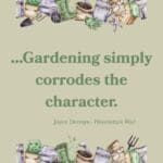 I recently read the greatest sentence every written about gardening. If you don't have much time, here it is. "...Gardening simply corrodes the character." If you have a bit more time, allow …