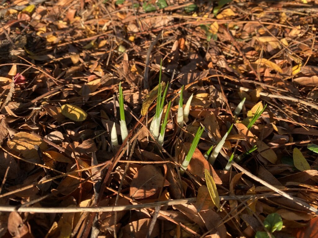 Those of you who recognize these as little crocuses coming up might wonder if I slipped in a spring photo just to fool you. I assure you, I didn’t! These are the autumn crocuses, Crocus speciosus, waking up to ensure I’ll have some more blooms later in October, perhaps early November. It’s “spring” for them!